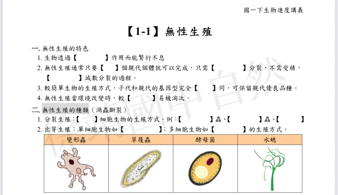國一生物(上+下學期)